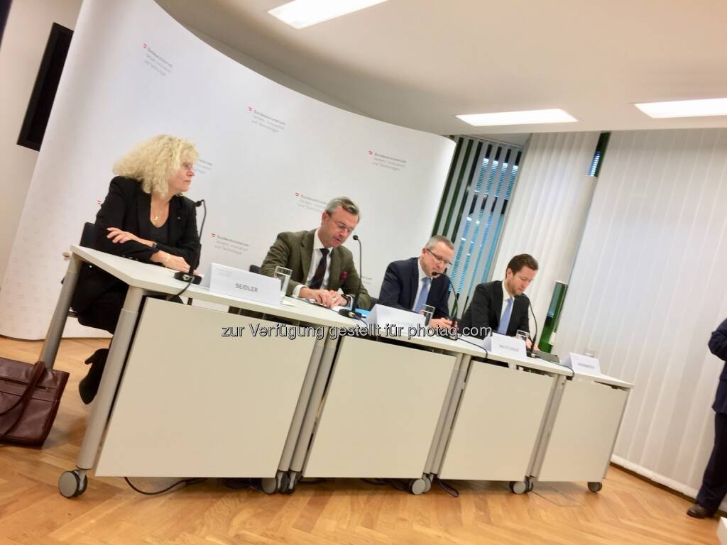 Rektorin Seidler (TU Wien), Minister Hofer (BM für Verkehr, Innovation und Technologie), CEO Machtlinger ( FACC) und CEO von Hoensbroech (Austrian Airlines), "Präsentation des Strategischen FTI-Beirats für den österreichischen Luftfahrtsektor" 11.12.18 (11.12.2018)