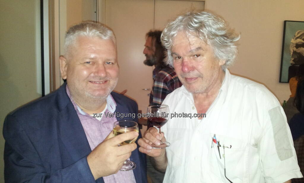 Anstoßen auf eine bessere Welt! Mit solchen Mitstreitern wird es gelingen. Mit Heini Staudinger (rechts), 25.4.19 (28.04.2019)