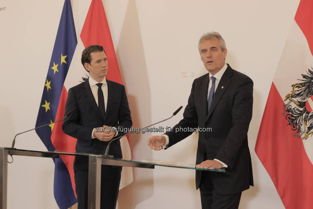 Regierungssprecher Peter Launsky-Tieffenthal, Bundeskanzler Sebastian Kurz, OMV-CEO Rainer Seele, PK "OMV-Standort Wien" 17.5.19 (17.05.2019)