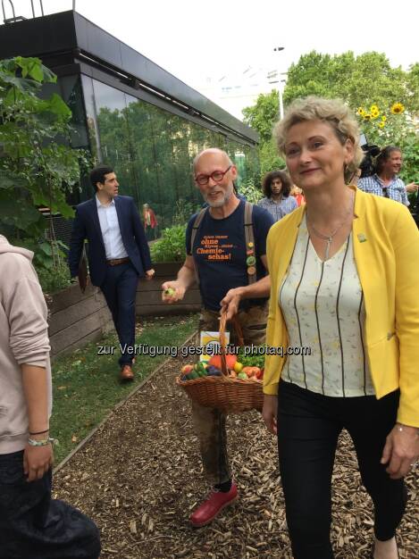 Lea Paulovics, Sebastian Bohrn-Mena, Johannes Guttmann, Gertraud Grabmann vor der PK "Fakten zur klimafreundlichen Landwirtschaft und zur Rolle der Bio-Landwirtschaft", 13.8.19 (13.08.2019)
