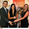 Karl Stoss (Oesterreichische Lotterien), Mirna Jukic, Tom Walek. Lotterien Gala Nacht des Sports, Sportlerin mit Herz Photo: Gepa pictures/ Michael Riedler © Gepa pictures/ Michael Riedler (31.10.2014)