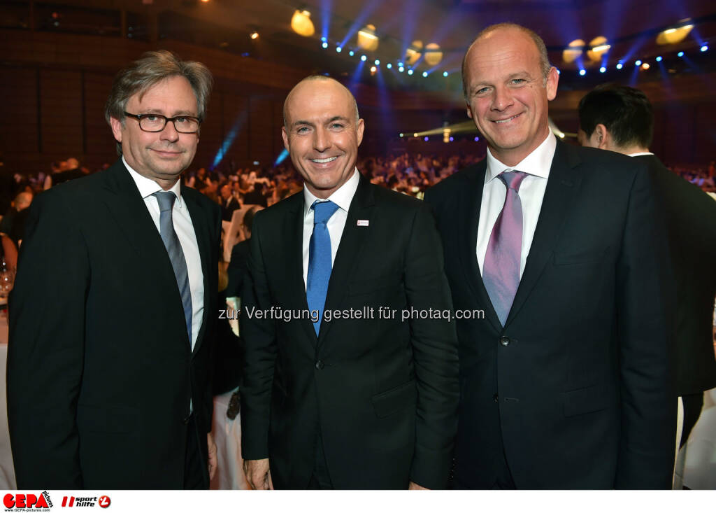 Alexander Wrabetz (ORF), Minister Gerald Klug und Herwig Straka (Emotion). Photo: GEPA pictures/ Michael Riedler © Gepa pictures/ Michael Riedler (31.10.2014)