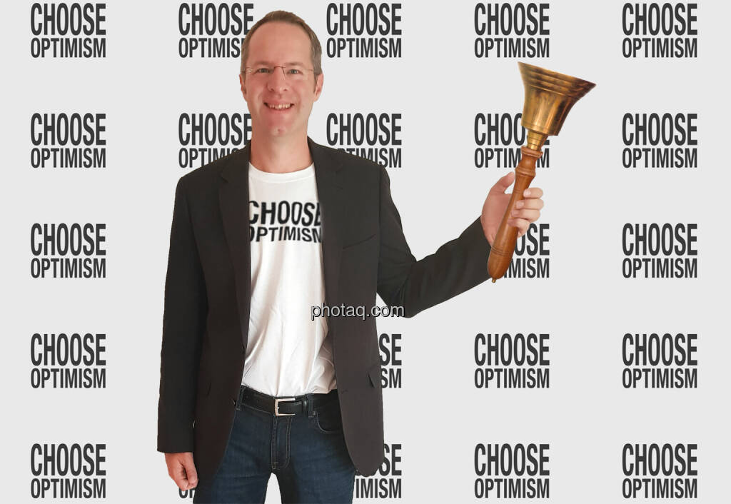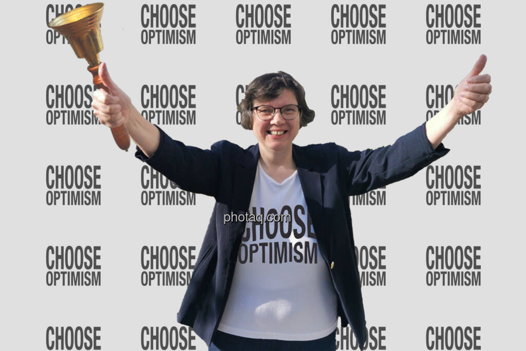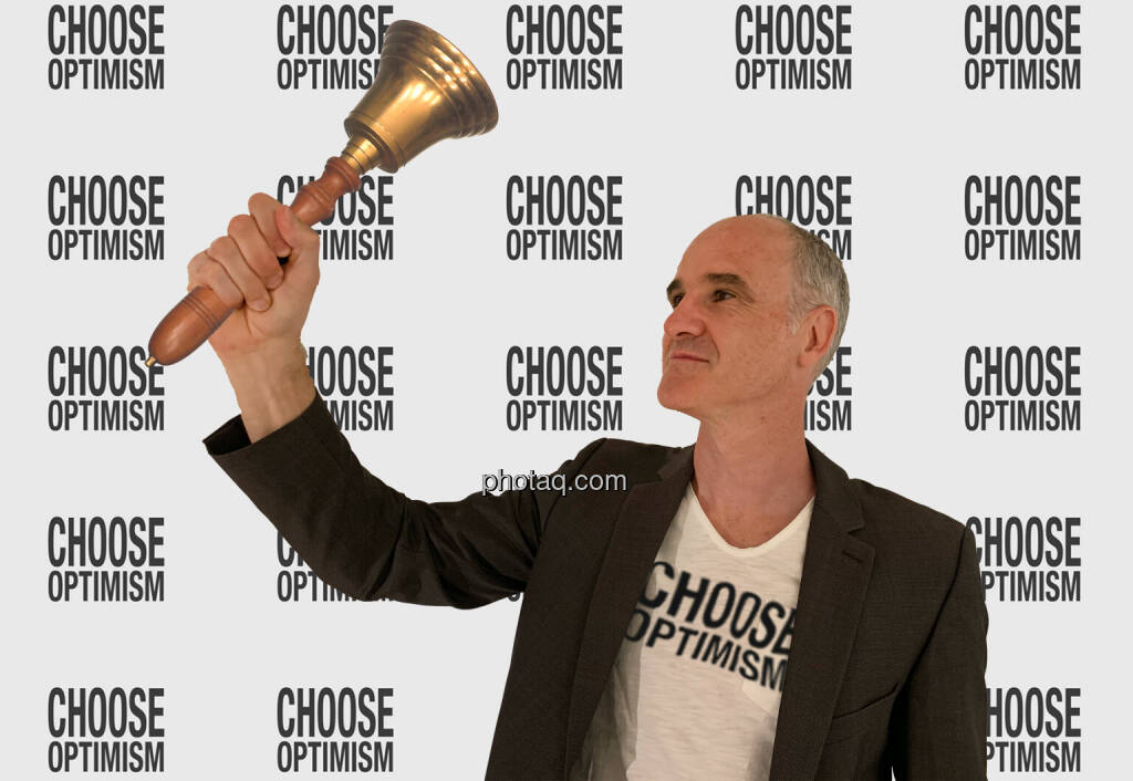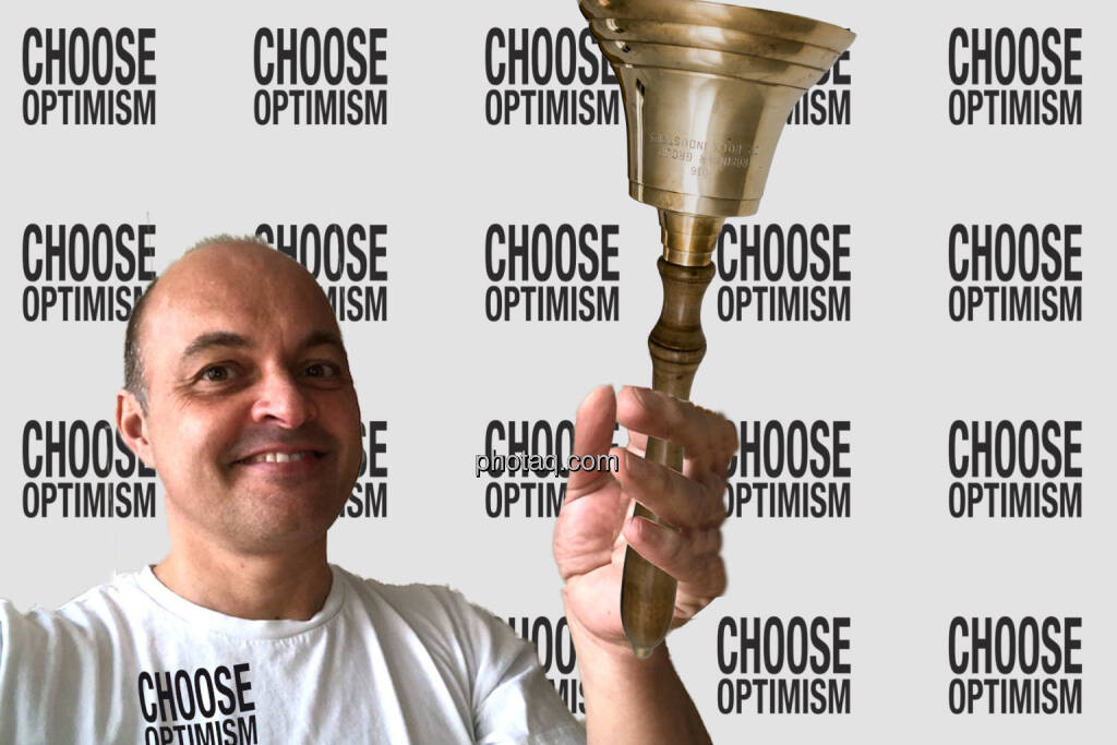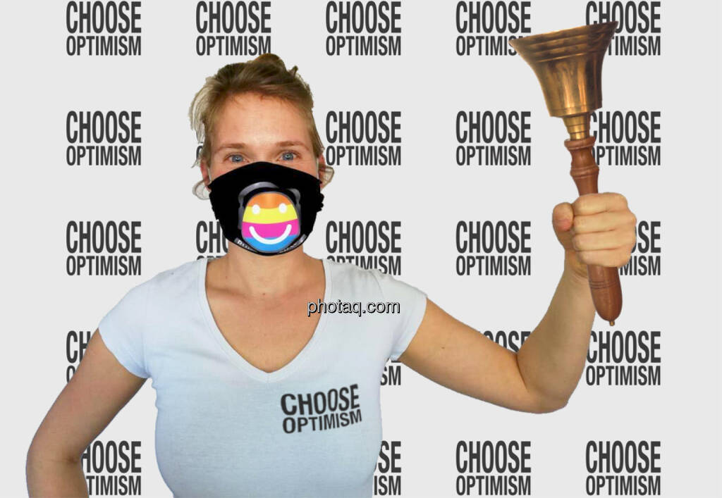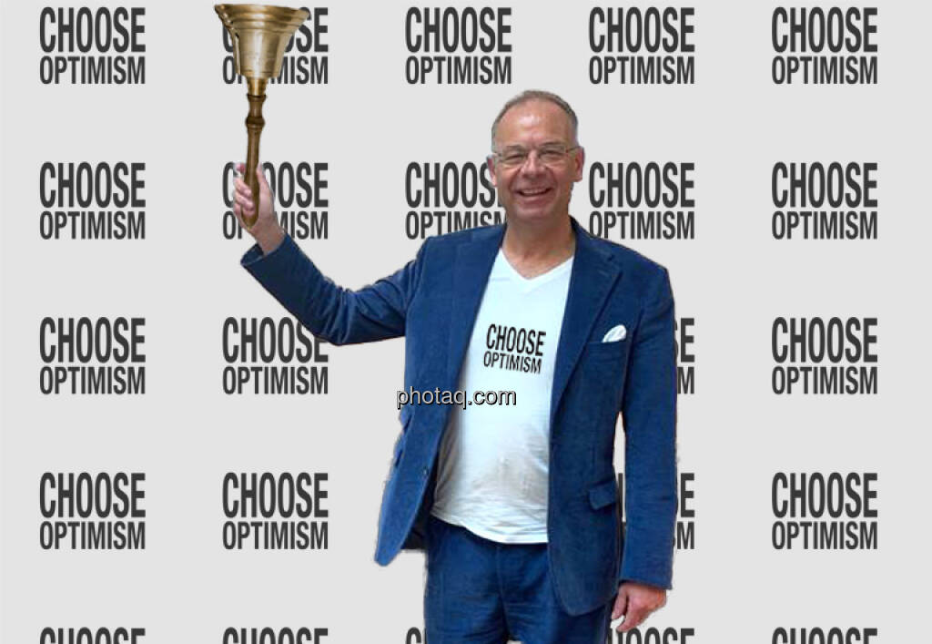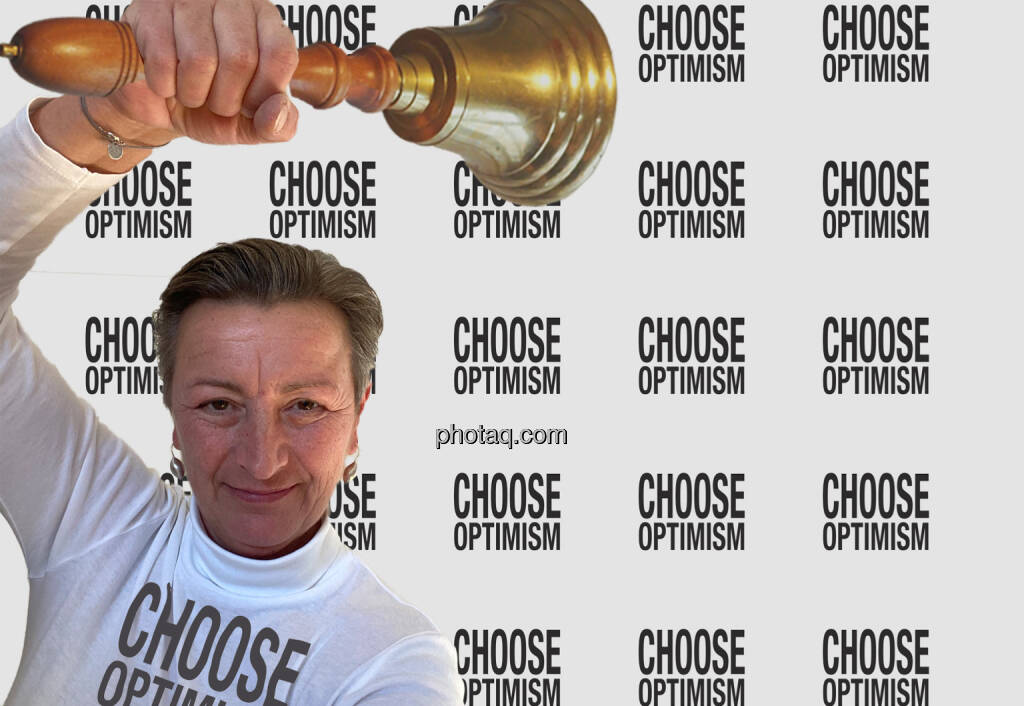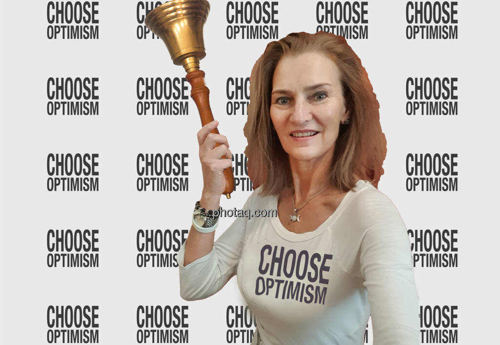 Gelerntes Bell-Läuten mit „sich treffen“ derzeit nicht möglich, aber digitales Bell-Läuten sehr wohl. Ein mail an uns, wir geben die Glocke in die Hand und montieren "Choose Optimism" auf ein weisses Shirt. Denn: Das Börse Social Network kombiniert das mit dem bereits 2008 und 2011 eingesetzten „Choose Optimism“-Claim für http://www.openingbell.eu , seit nunmehr fast 1000 Tagen die tägliche Opening Bell. Supporter werden? Mail an christian@boerse-social.com.