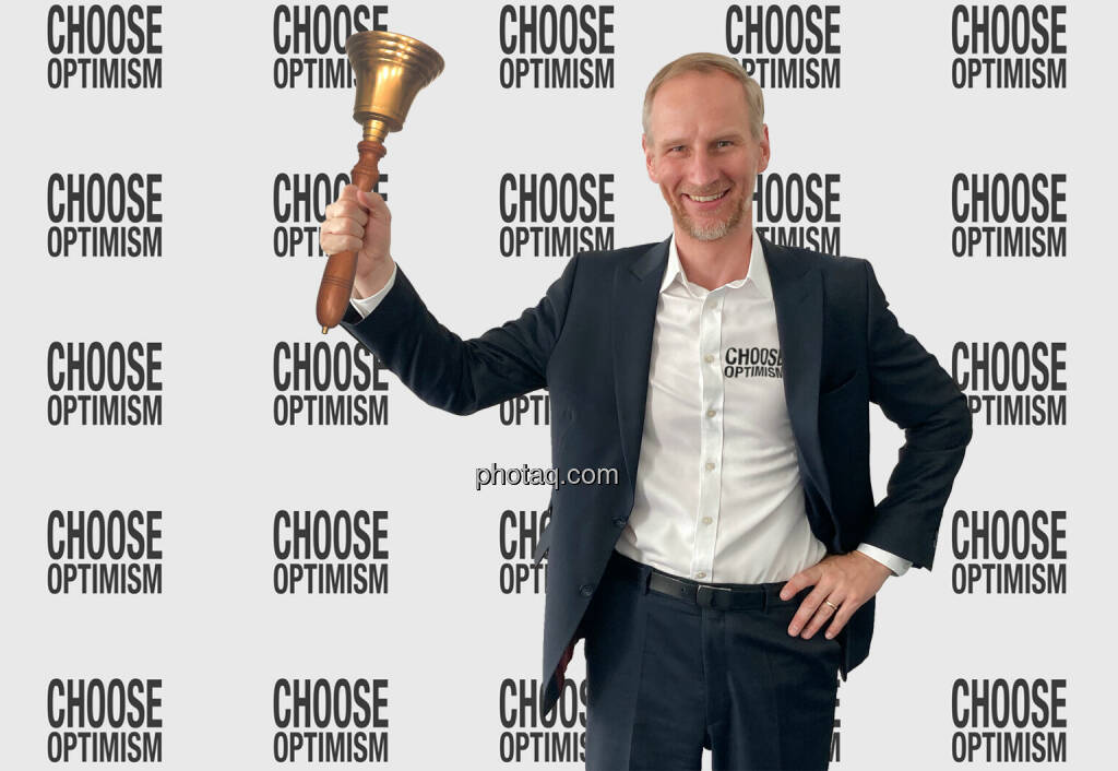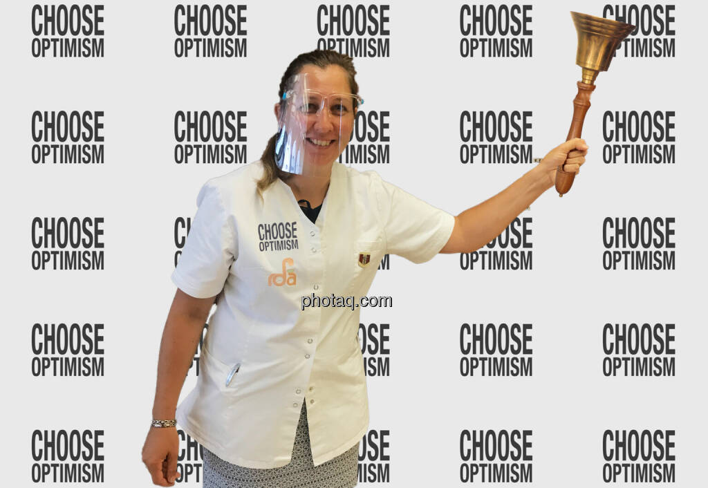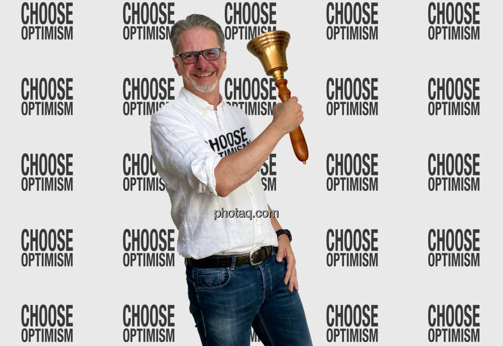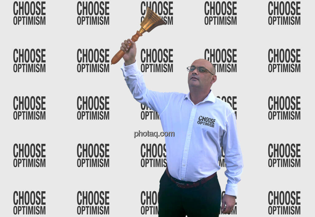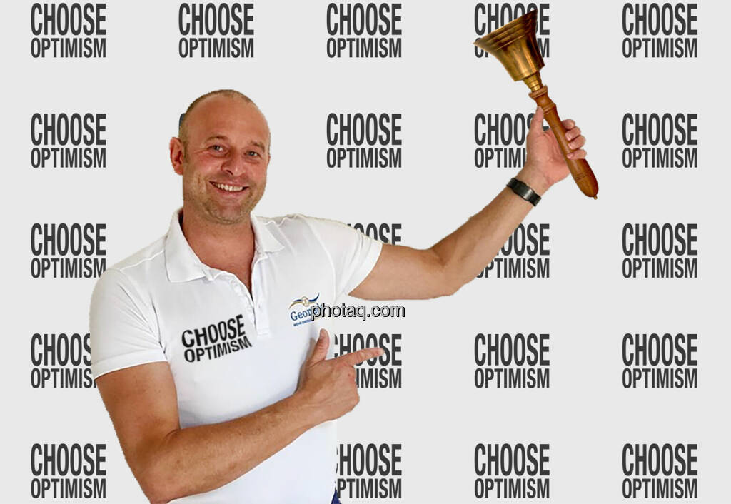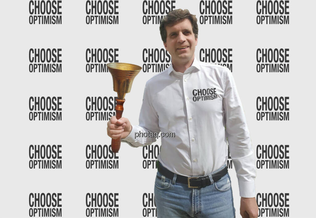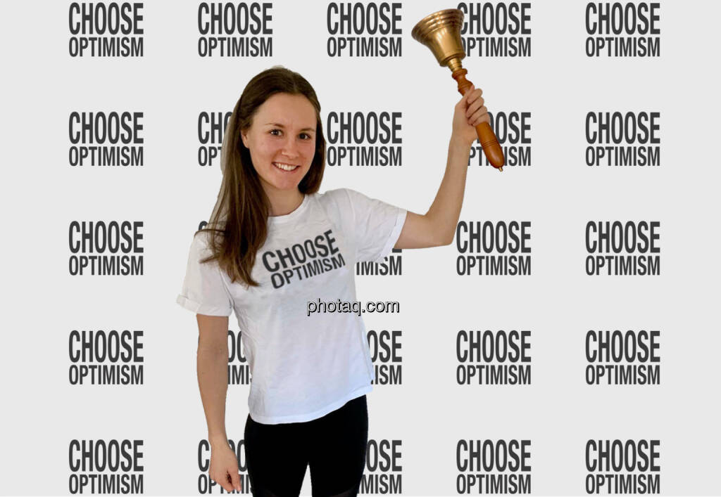 Gelerntes Bell-Läuten mit „sich treffen“ derzeit nicht möglich, aber digitales Bell-Läuten sehr wohl. Ein mail an uns, wir geben die Glocke in die Hand und montieren "Choose Optimism" auf ein weisses Shirt. Denn: Das Börse Social Network kombiniert das mit dem bereits 2008 und 2011 eingesetzten „Choose Optimism“-Claim für http://www.openingbell.eu , seit nunmehr fast 1000 Tagen die tägliche Opening Bell. Supporter werden? Mail an christian@boerse-social.com.