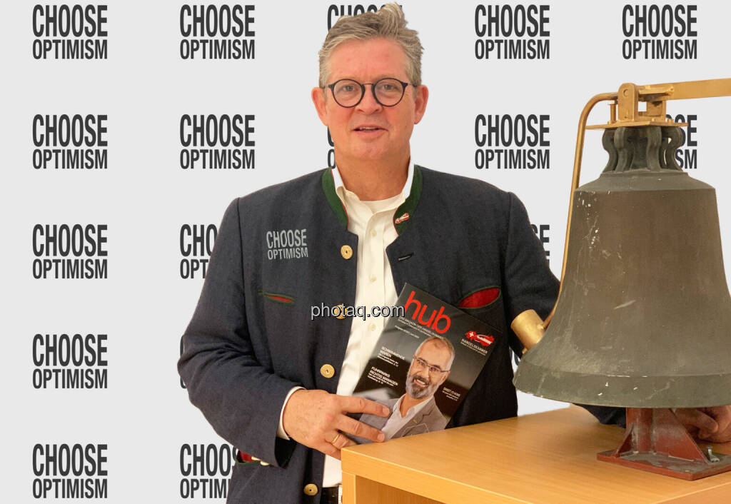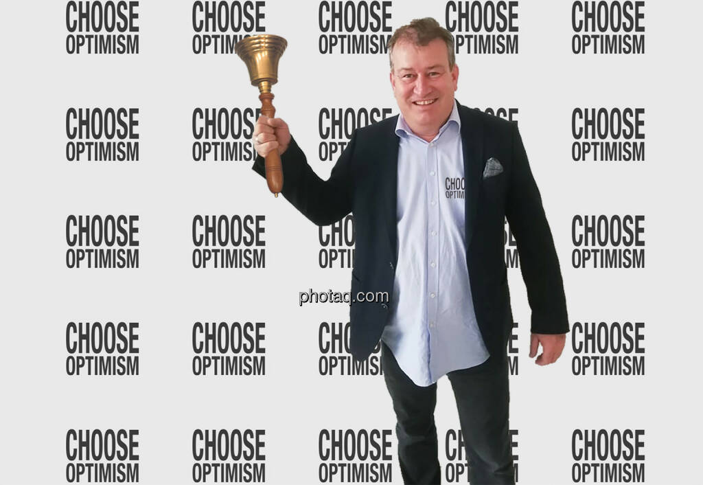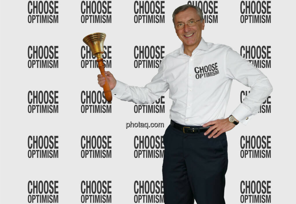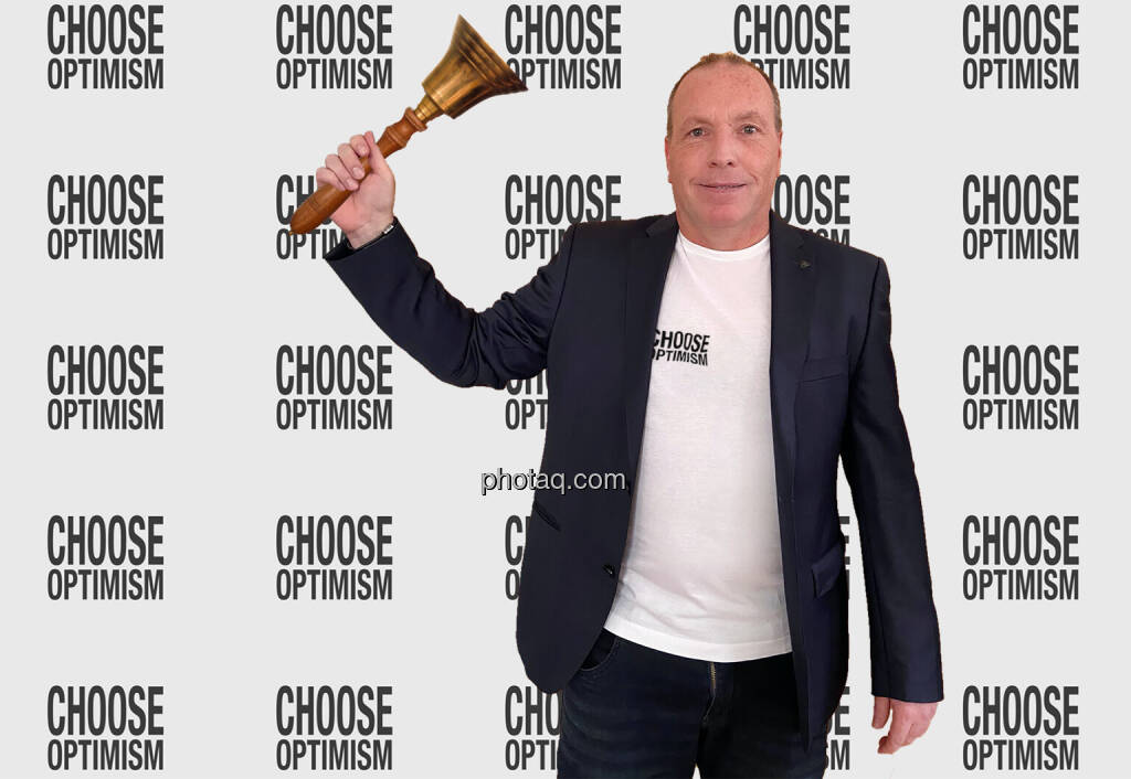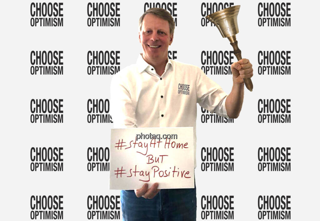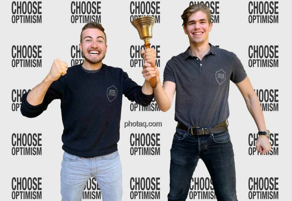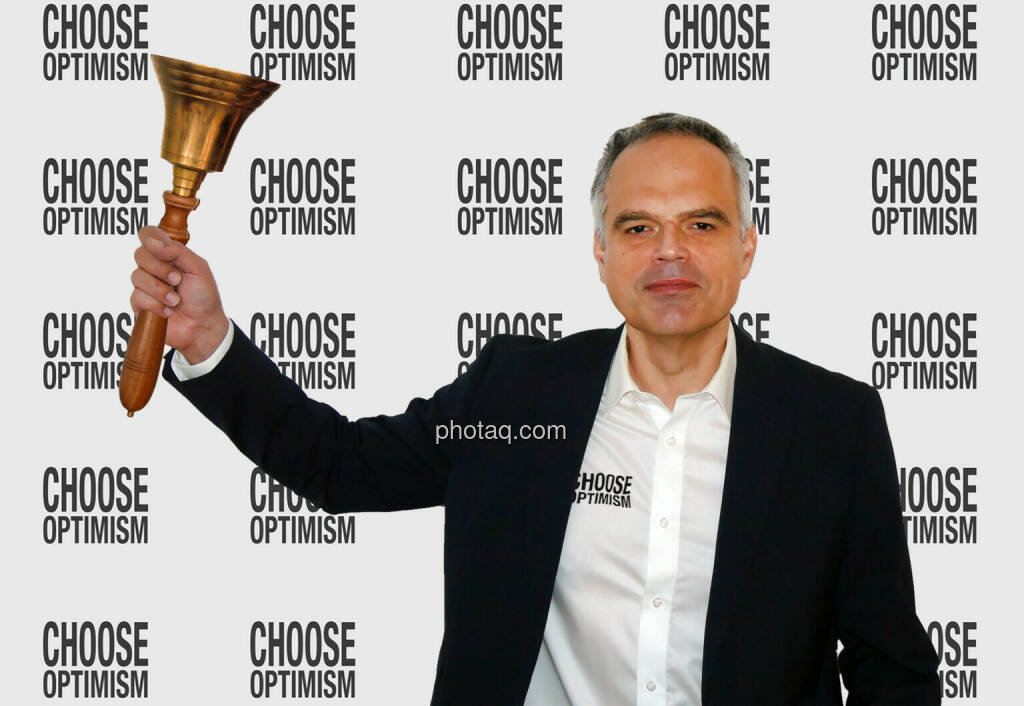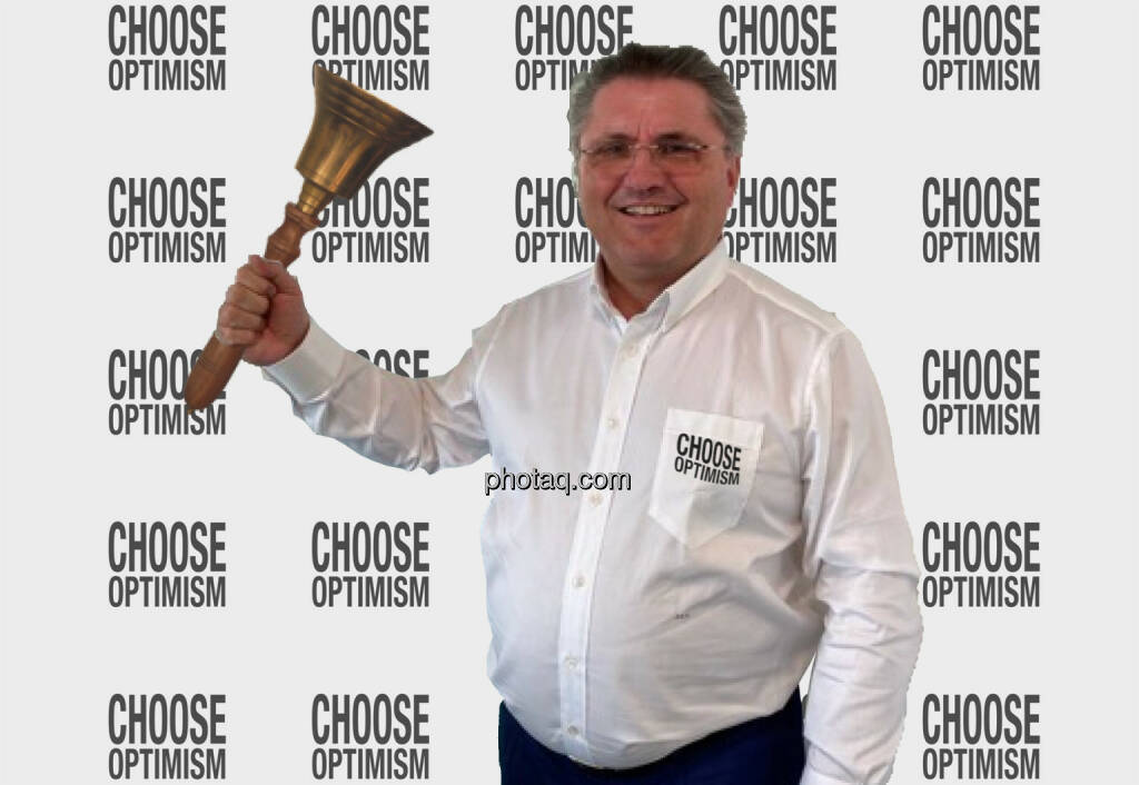 Gelerntes Bell-Läuten mit „sich treffen“ derzeit nicht möglich, aber digitales Bell-Läuten sehr wohl. Ein mail an uns, wir geben die Glocke in die Hand und montieren "Choose Optimism" auf ein weisses Shirt. Denn: Das Börse Social Network kombiniert das mit dem bereits 2008 und 2011 eingesetzten „Choose Optimism“-Claim für http://www.openingbell.eu , seit nunmehr fast 1000 Tagen die tägliche Opening Bell. Supporter werden? Mail an christian@boerse-social.com.