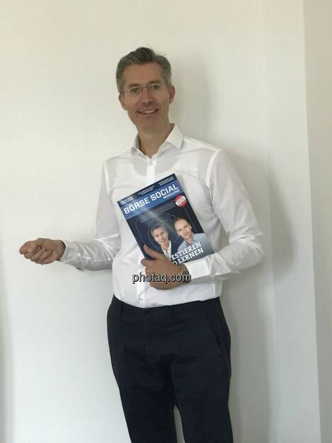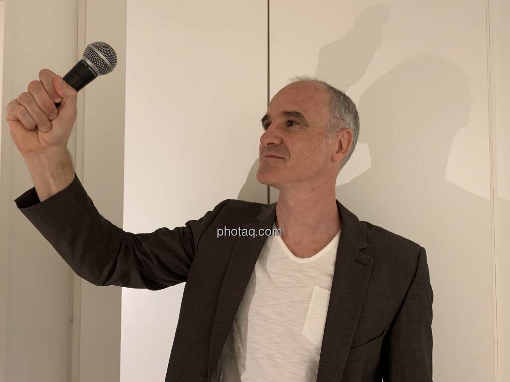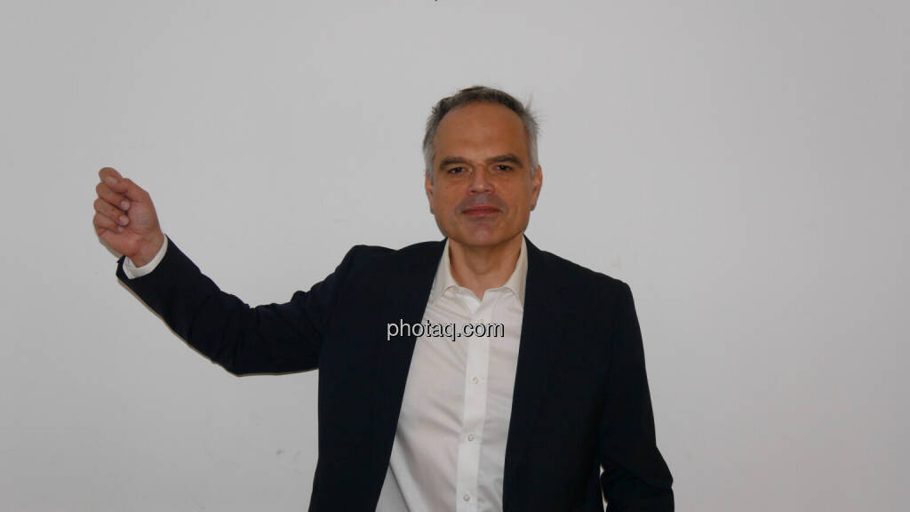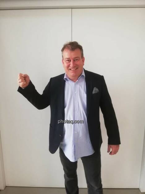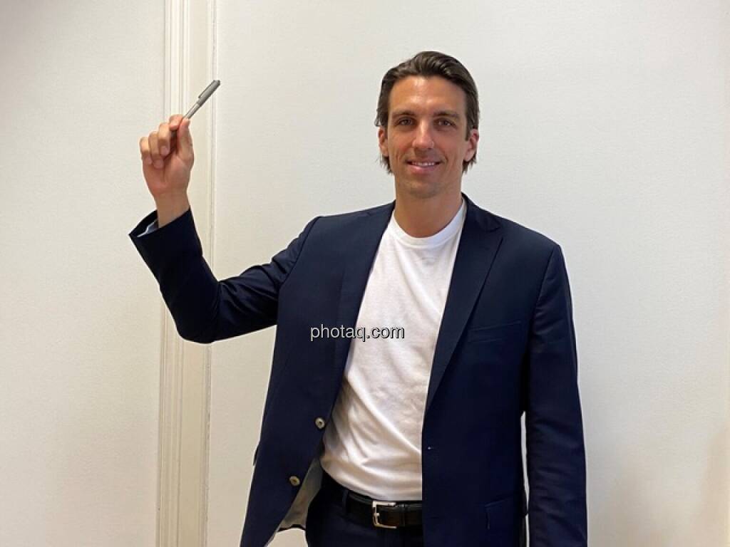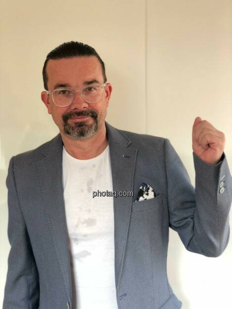 Wolfgang Matejka, vorher (Matejka & Partner Asset Management), Anm: Eine fast perfekte Vorlage, weisses Shirt mit viel Platz für Choose Optimism (01.04.2020)
