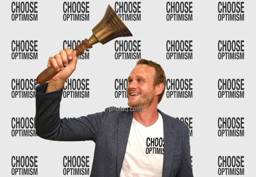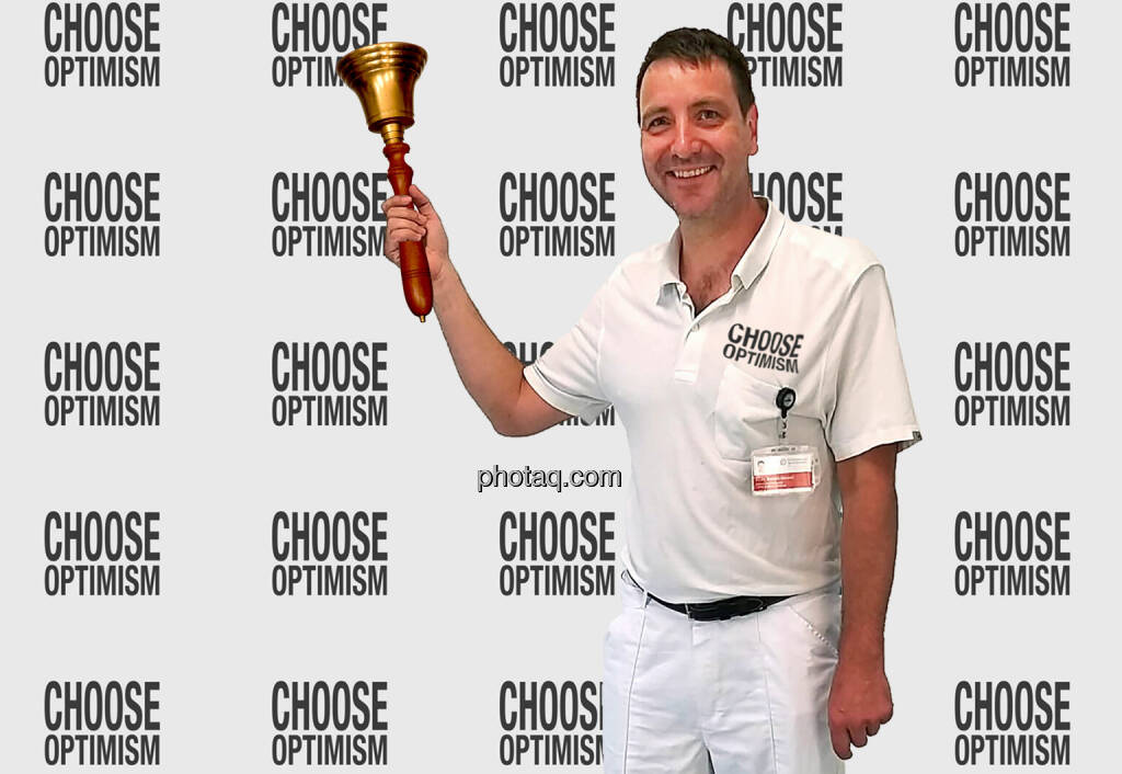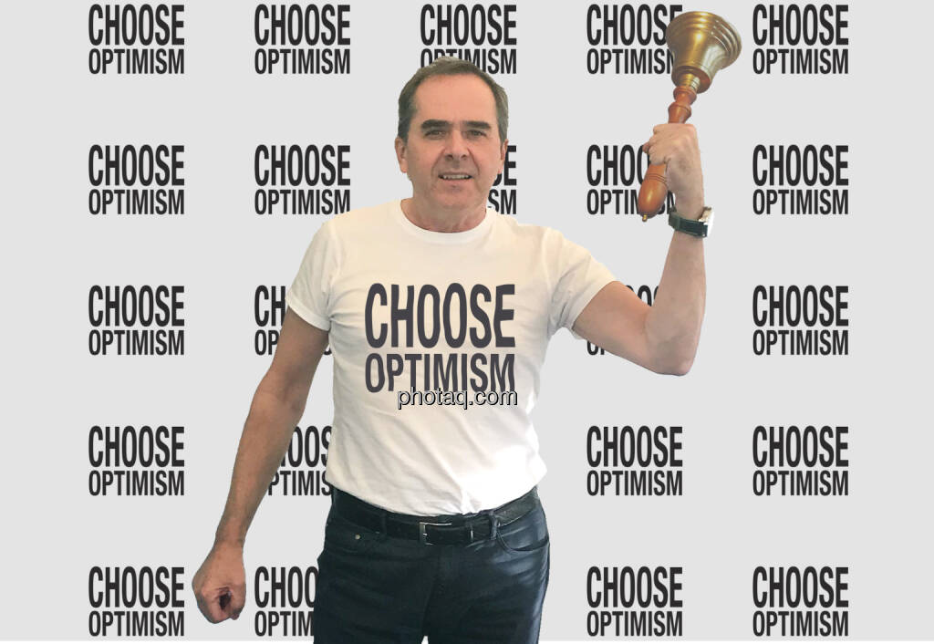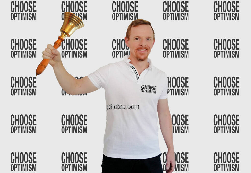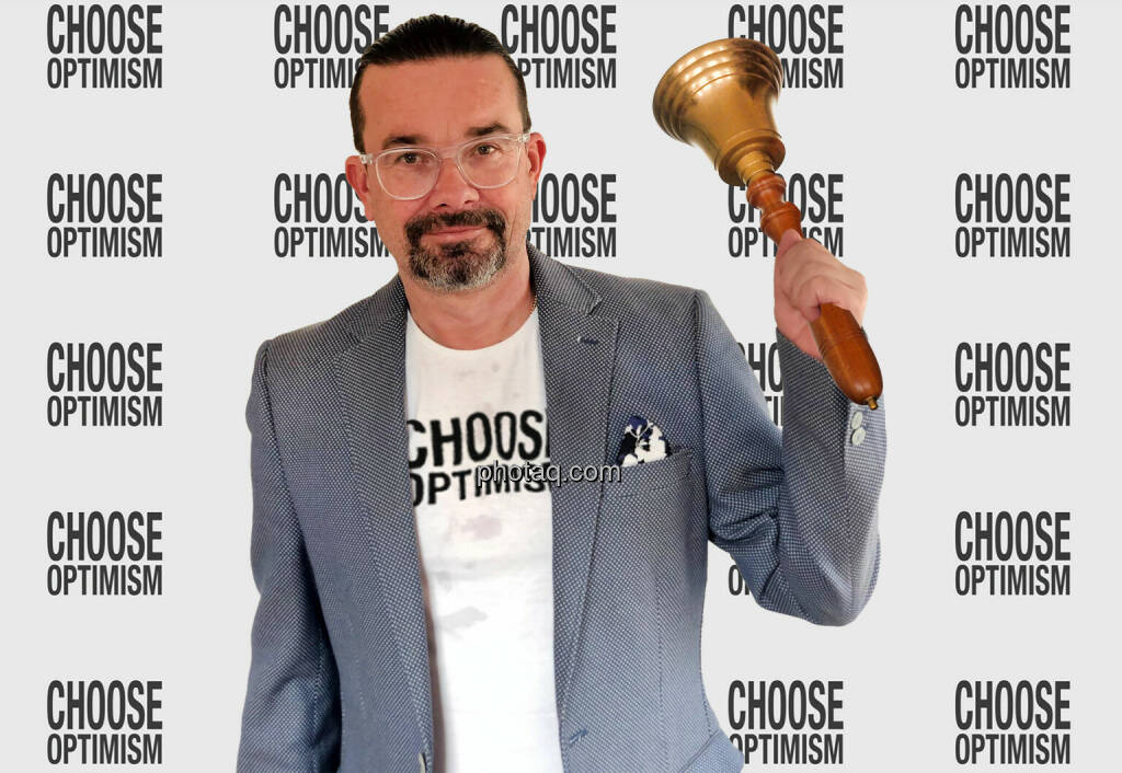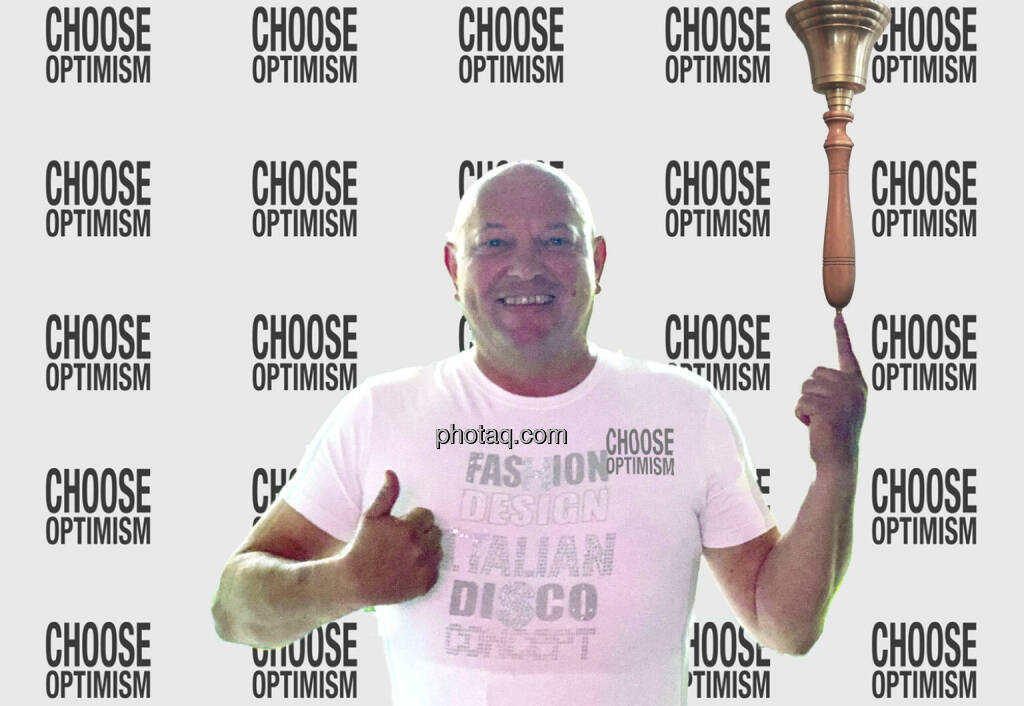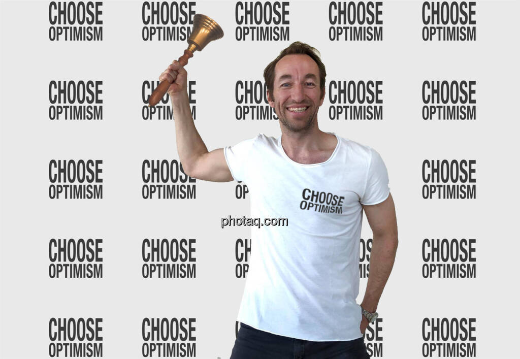 Markus Fallenböck, vorher (Own 360), Anm.: Gute Vorlage, "Glocke seitlich" macht eine grössere Gesamtplatzierung möglich, weil "Glocke über Kopf" ändert natürlich den Bildanschnitt, T-Shirt statt Hemd wärs noch gewesen, dann kann man "Choose Optimism" gross platzieren (31.03.2020)