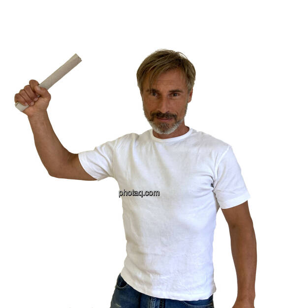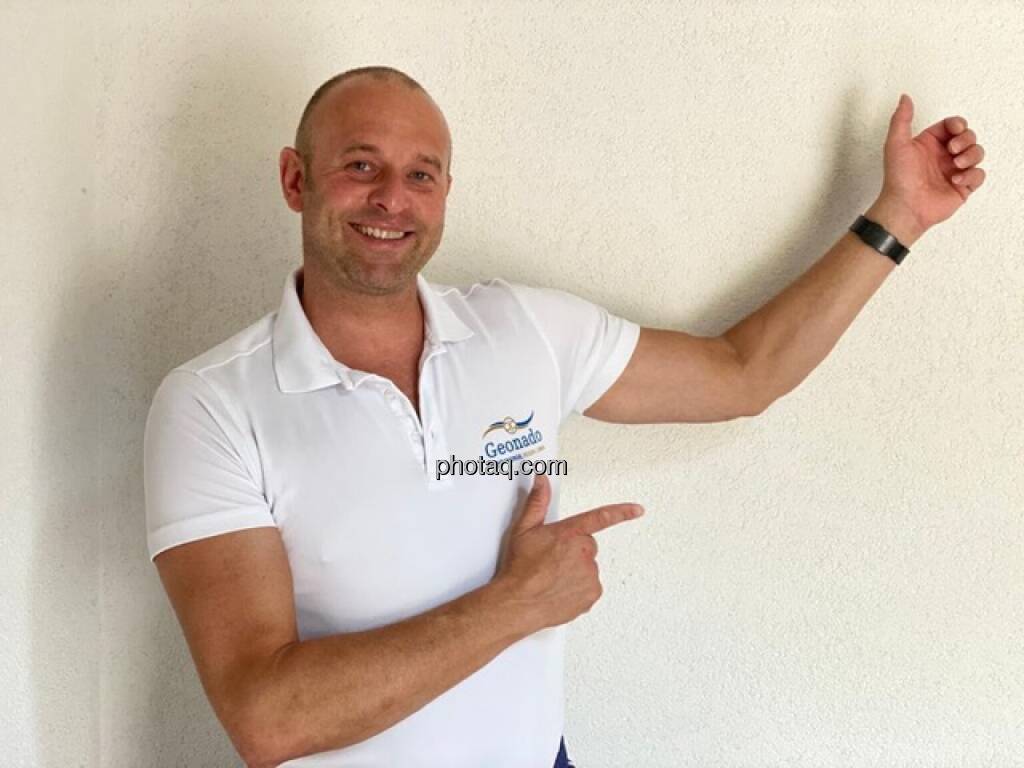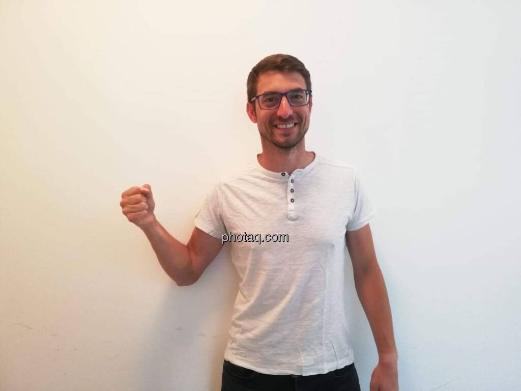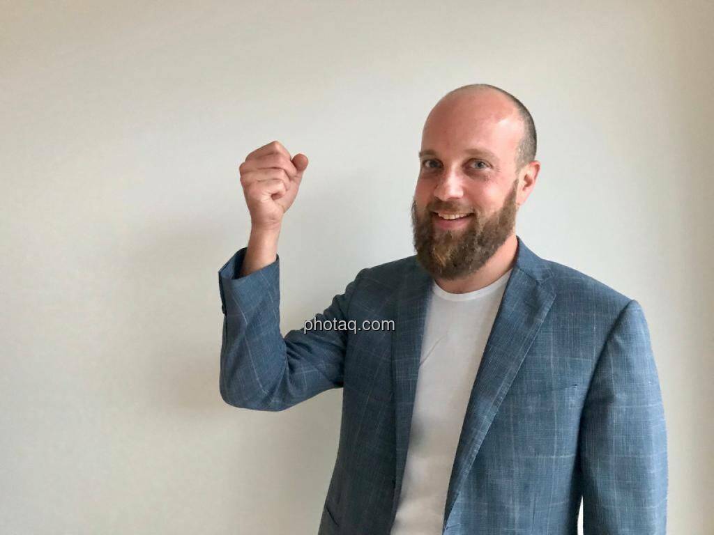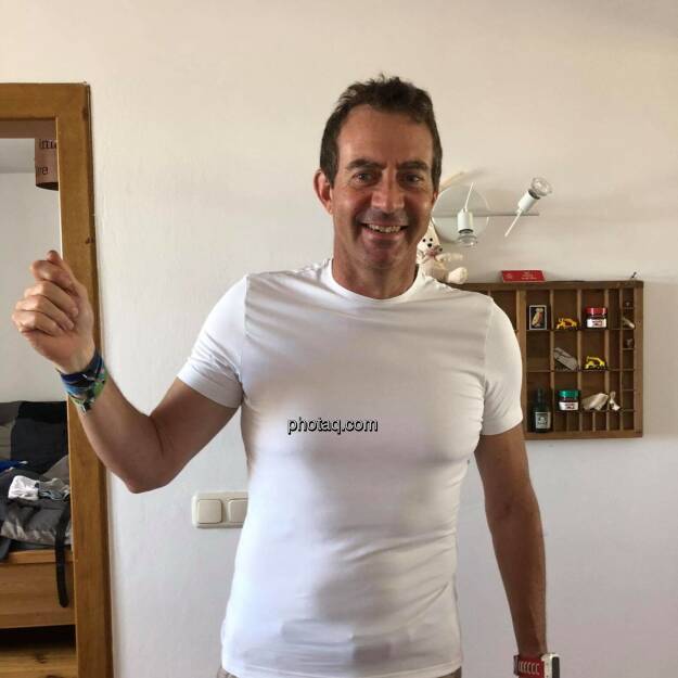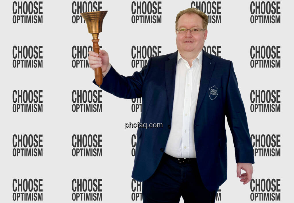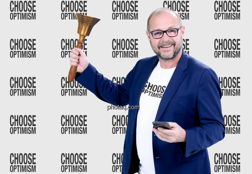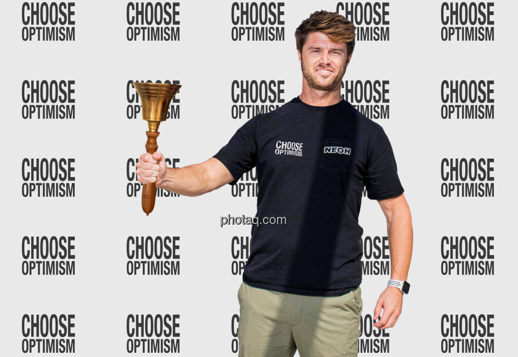 Markus Fallenböck, vorher (Own 360), Anm.: Gute Vorlage, "Glocke seitlich" macht eine grössere Gesamtplatzierung möglich, weil "Glocke über Kopf" ändert natürlich den Bildanschnitt, T-Shirt statt Hemd wärs noch gewesen, dann kann man "Choose Optimism" gross platzieren (31.03.2020)