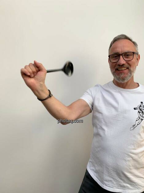 Alex Stern, vorher (WEST Design Studio, OFFF Vienna), Anm.: Dynamischer Löffel und seitlich angeschnitten mit Design am Leiberl - herausvordernd (24.04.2020)