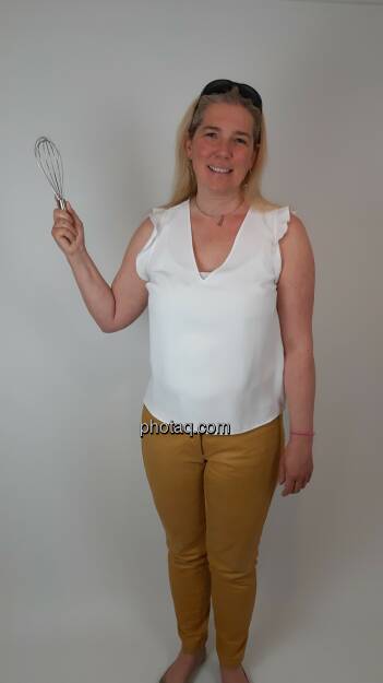 Regina Anzenberger, vorher (Galeristin, Künstlerin), Anm.: Am ersten Tag der Eröffnung der Galerie hat es geklappt, auch das mit weißem Oberteil... (23.04.2020)