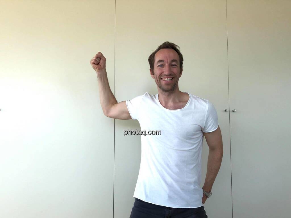 Paul Rettenbacher, vorher (Polytec), Anm: Die bisher beste Vorlage von der Handhaltung her. Und Paul hattte sogar noch ein Shirt aus der alten Choose Optimism Serie im Homeoffice (08.04.2020)