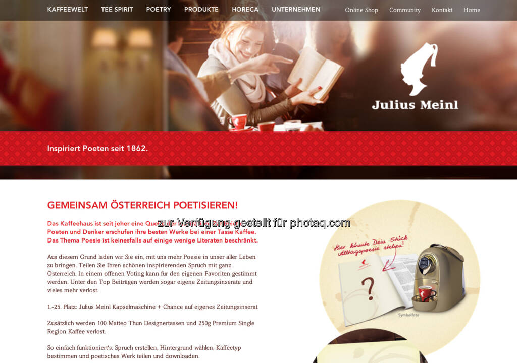 Julius Meinl inspiriert Poeten seit 1962 - http://www.meinlcoffee.com/de/at/meinl-stories/startpage-... © Aussendung (06.07.2014)