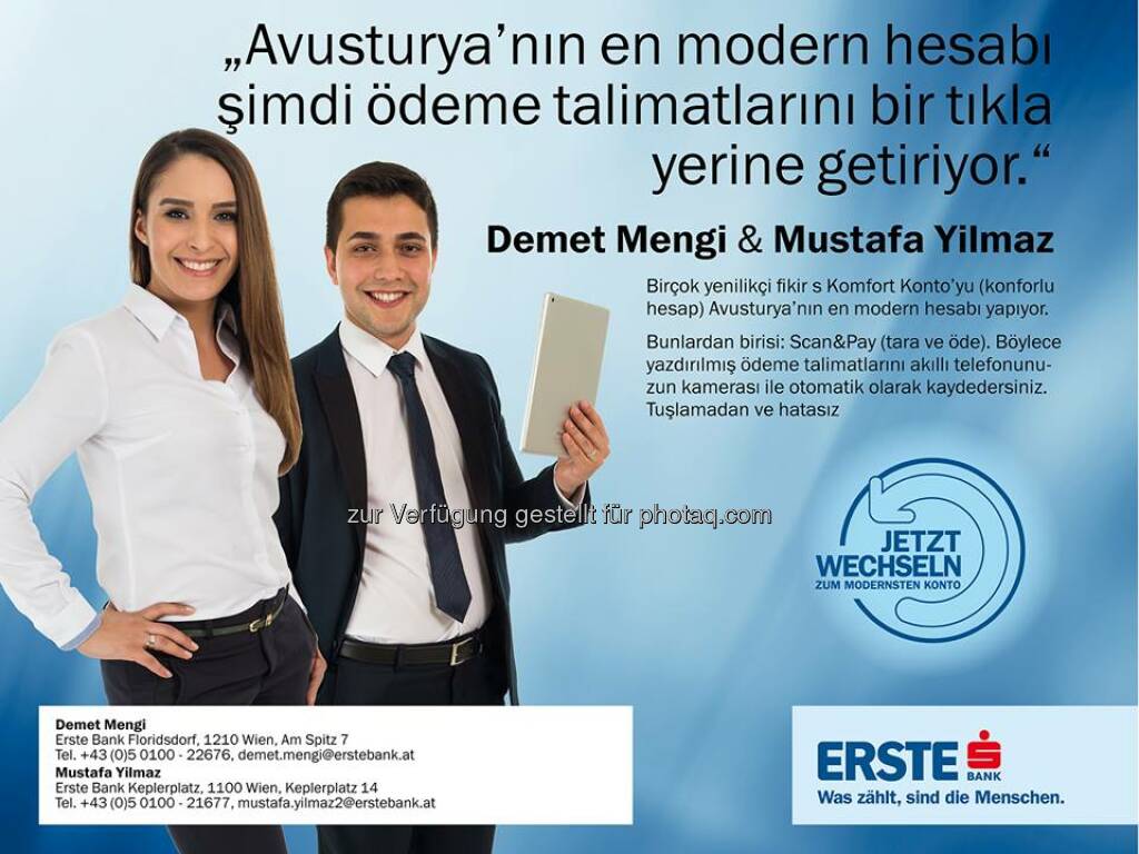 Erste Bank Demet Mengi, Mustafa Yilmaz: Türkce Müsteri temsilciler? Wussten Sie, dass es in der Erste Bank viele BetreuerInnen gibt, die auch in Fremdsprache betreuen können – wir möchten Ihnen einige vorstellen: Source: http://facebook.com/erstebank © Aussendung (24.07.2014)