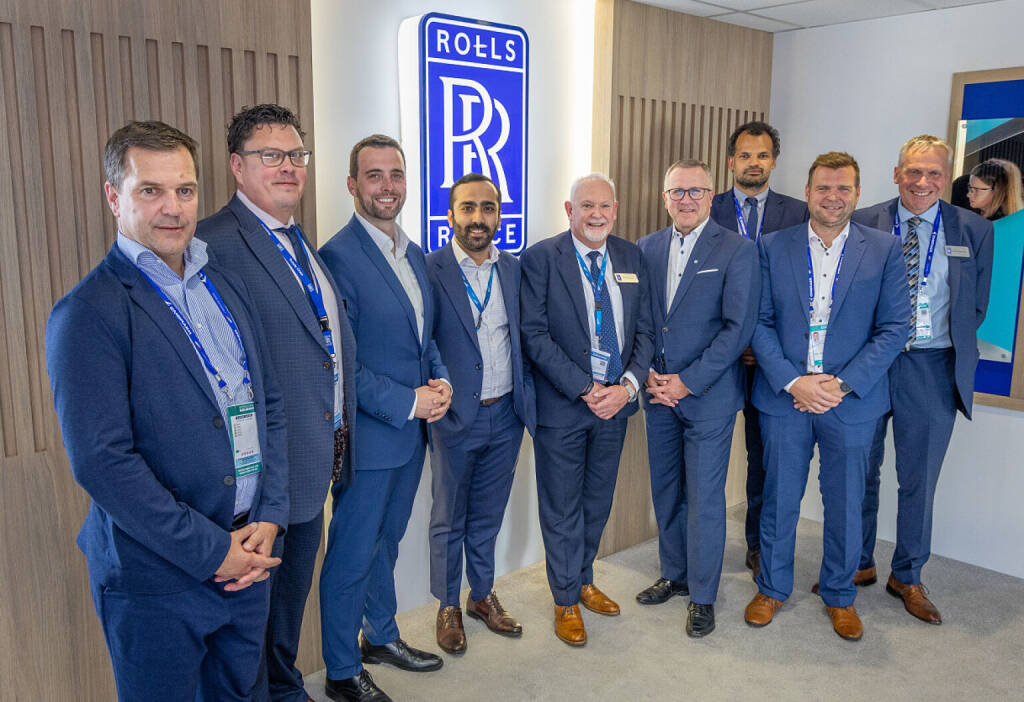 v.l.n.r.: Günter Nelböck (VP Engines & Nacelles | FACC), Mark Procter (VP Supplier Management | Rolls-Royce), FACC CFO Florian Heindl, Sajal Batra (Strategic Procurement Category Manager | Rolls-Royce), Huw Morgan (Senior VP Finished Components | Rolls-Royce), FACC CEO Robert Machtlinger, Lawrence J. Betty (VP Partners | Rolls-Royce), Bernhard Schöpf (Director Program | FACC), Steve Anderson (VP Strategic Procurement | Rolls-Royce) © Rolls-Royce © Aussender (19.06.2025)