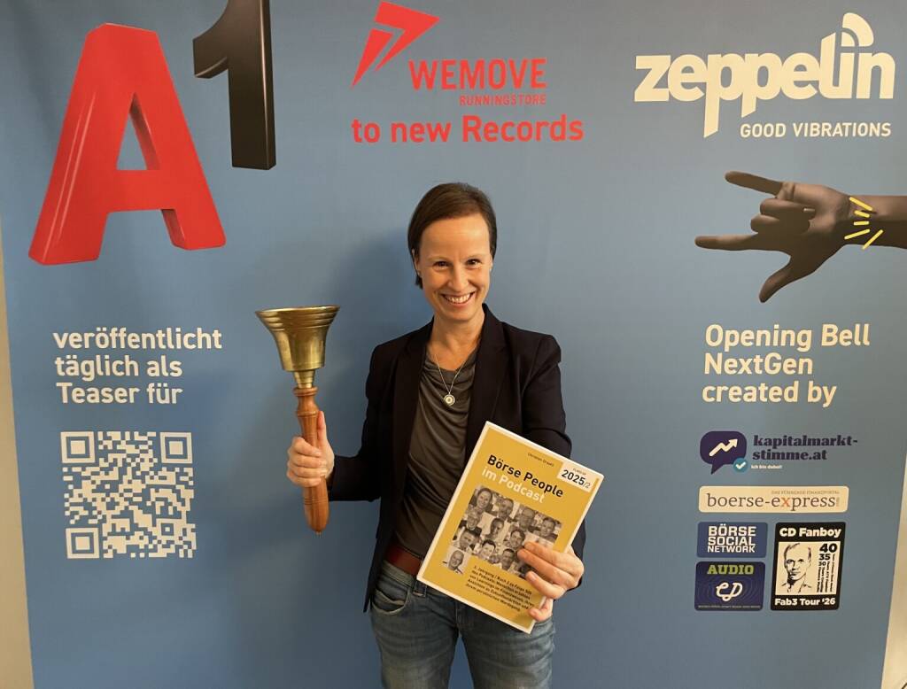 Viktoria Gass läutet die Opening Bell für Montag. Die PwC-Partnerin hat, was die Börsepeople-Podcasts betrifft, die Führung nach Downloads in der Jahressicht übernommen. Vgl. http://www.audio-cd.at/people (12.01.2026)
