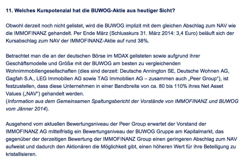 Frage an Immofinanz/ Buwog: Warum wird die Buwog von der Immofinanz abgespalten? (18.04.2014)