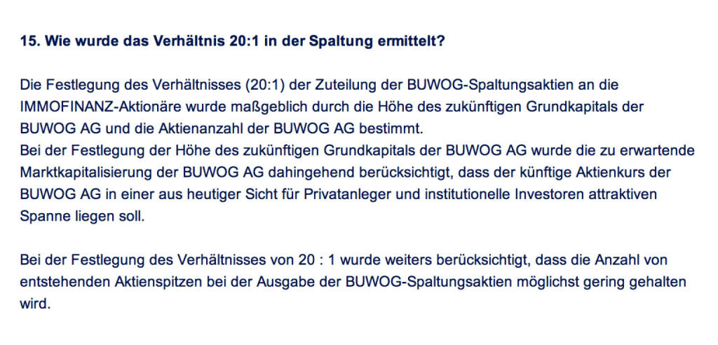 Frage an Immofinanz/ Buwog: Wie wurde das Verhältnis 20:1 in der Spaltung ermittelt? (18.04.2014)