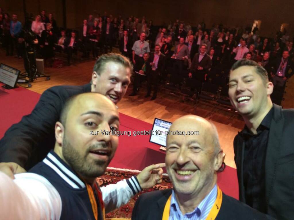 Ali Mahlodji, Hansi Hansmann- Selfieeeeee Time :-D Die Bundestagung Junge Wirtschaft Wien hat mächtig gerocked! Und Interviews mit WEIN & CO, NENI & Sascha Lobo gab's oben drauf ...what-a-feeeeeeling! Source: http:// twitter.com/whatchado, © mit Genehmigung der jeweiligen Selfiesierenden (28.09.2014)