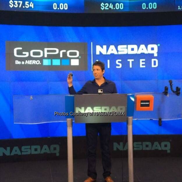 Watch the incredible GoPro Nasdaq Opening Bell Ceremony in Celebration of their #IPO! The different GoPro camera angles in the studio will blow your mind $GPRO Source: http://facebook.com/NASDAQ (28.06.2014)