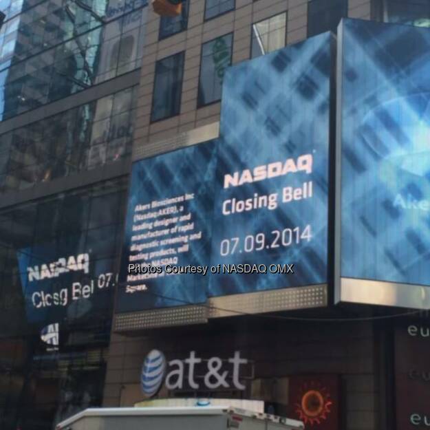 Watch Akers Biosciences Inc. takeover #TimesSquare after the Closing Bell! $AKER @AkersBio Source: http://facebook.com/ NASDAQ (10.07.2014)