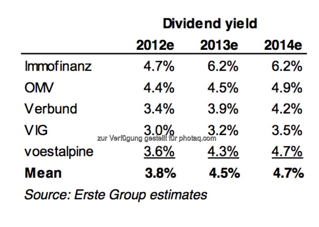 5 Titel im "Dividenden-Österrreich-Core-Portfolio" der Erste Group, anbei die E(r)stimates für 2012 bis 2014 (c) Erste-Research (07.01.2013)