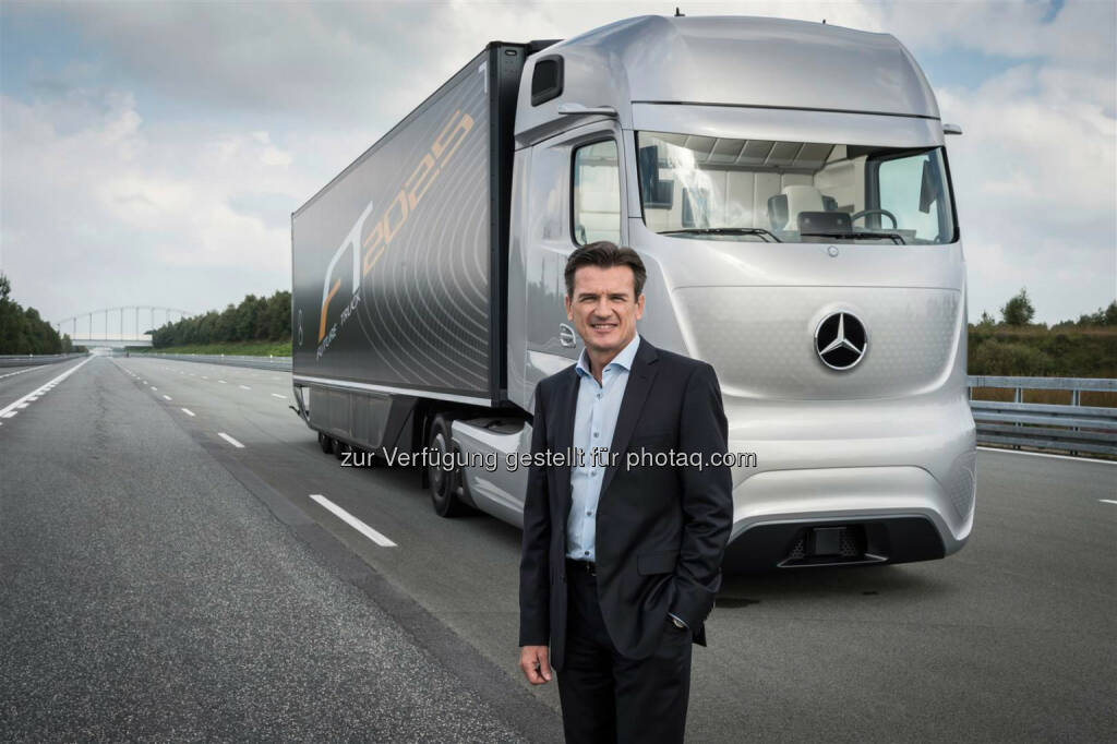 Wolfgang Bernhard, Vorstand Daimler AG, vor einem Mercedes-Benz Future Truck 2025: Daimler Trucks verkauft fast 500.000 Lkw in 2014, © Aussendung (29.12.2014)