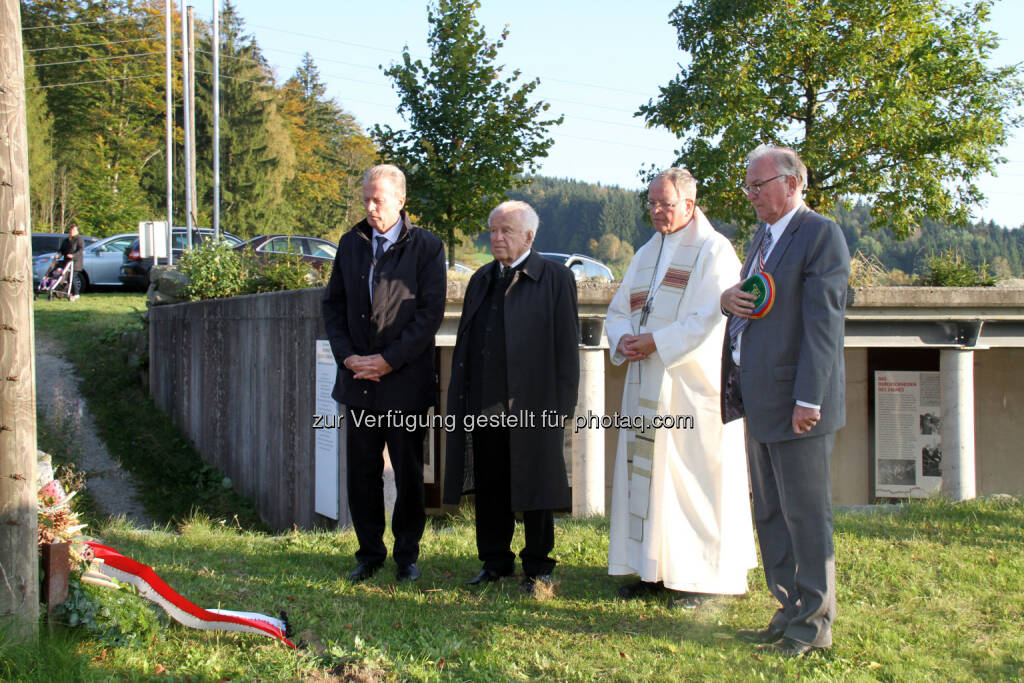 Vizekanzler Reinhold Mitterlehner, Alt-Landeshauptmann Josef Ratzenböck, Abt Martin Felhofer und Staatssekretär a.D. Helmut Kukacka: Arbeitsgemeinschaft Katholischer Verbände Österreichs (AKV): 25 Jahre Fall des Eisernen Vorhangs - Vizekanzler Mitterlehner und Landeshauptmann Pühringer bei Gedenkfeier am Mahnmal, © Aussender (05.10.2014)