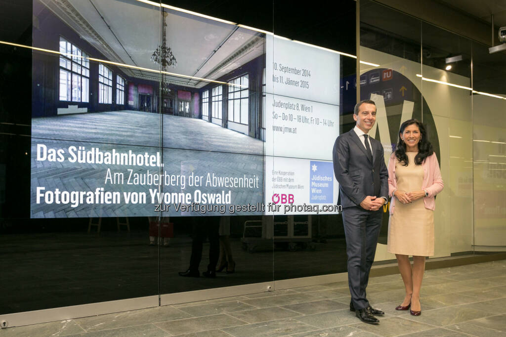 ÖBB-Chef Christian Kern und Danielle Spera vor der Digiwall: ÖBB Österreichische Bundesbahnen: Mehr Platz für Kunst im öffentlichen Raum: ÖBB starten mit Digital Wall am neuen Wiener Hauptbahnhof, © Aussender (13.10.2014)
