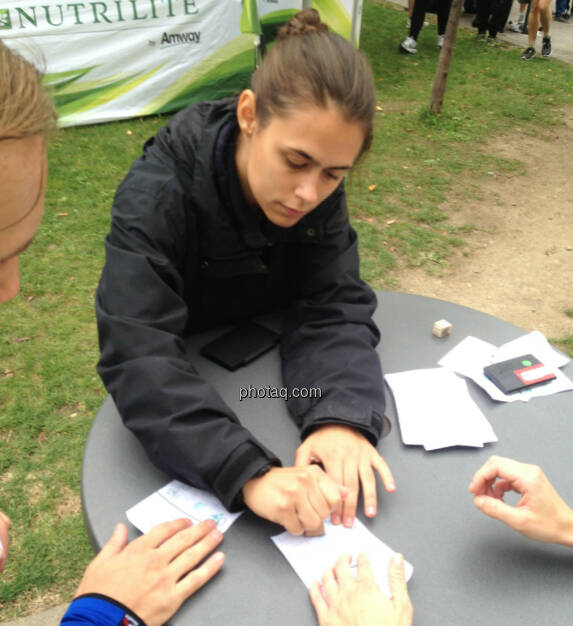 Maria Vassilakou-Double mit Runde für Runde motivierenden Anfeuerungsrufen (04.10.2014)