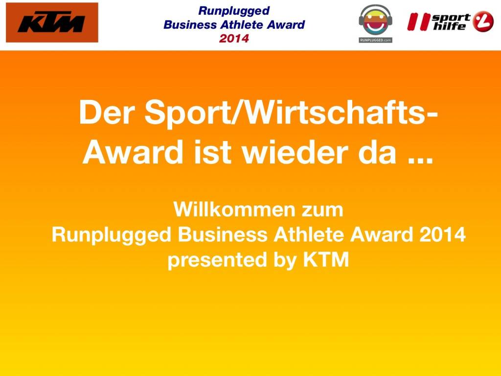Der Sport/Wirtschafts-Award ist wieder da ... Willkommen zum Runplugged Business Athlete Award 2014 presented by KTM (02.12.2014)