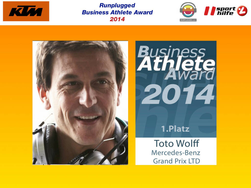 Runplugged Business Athlete Award 2014 presented by KTM : Rang 1: Toto Wolff, Rang 2: Romy Faisst, Rang 3: Franz Gschiegl (02.12.2014)
