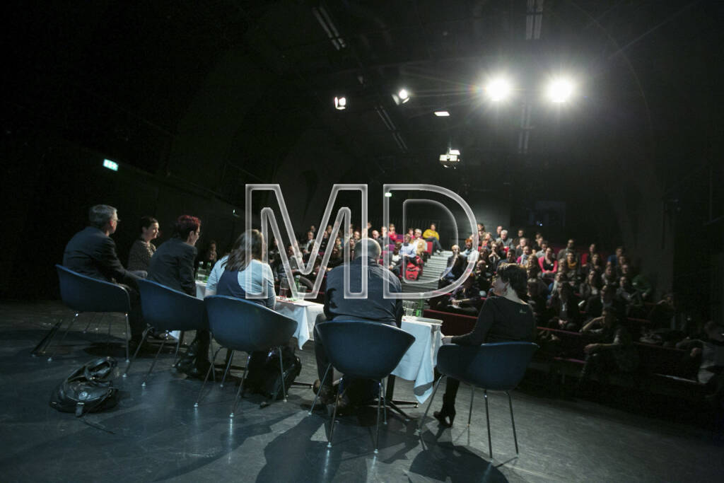 Roswitha Reisinger (GF Lebensart/Businessart), Sephan Rabl (GF Dschungel Wien), Raphaela Keller (Vorsitzende des ÖDKH), Heidi Schrodt (Vorsitzende Bildung Grenzenlos), Walter Emberger (GF teach for Austria),Cornelia Dankl (Nachhaltigkeitsbeauftragte der Bonus Vorsorgekasse AG), © Martina Draper (11.01.2013)