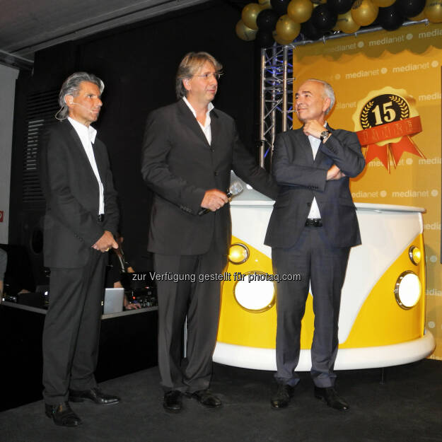 Chris Radda, Oliver Jonke, Germanos Athanasiadis : medianet“ Verlag AG feierte 15. Geburtstag : © Somona Katzlinger party.at, © Aussender (02.09.2015)