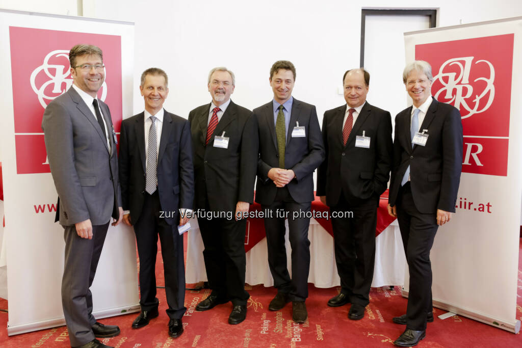 Moderator Bernd Winter (Verkehr Wochenzeitung), Erich Forster (Westbahn), Friedrich Zibuschka (Amt der NÖ Landesregierung), Christian Chimani (AIT Austrian Institute of Technology), Ronald Chodász (Verband der Bahnindustrie) und Sebastian Kummer (WU Wien): IIR GmbH: Ein Land ohne Papierfahrschein: 14 Millionen Niederländer fahren öffentlich mit der Chipkaart, © Aussendung (03.03.2015)
