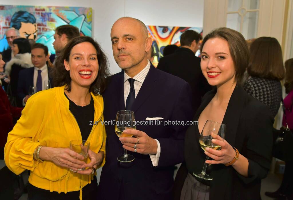 Inhaber der Inoperable Streetart Gallery Nathalie Halgand und Nicholas Platzer (li und re), Szenegastronom und Streetart-Sammler Nuriel Molcho (Mitte), © leisure.at/Christian Jobst (18.01.2015)