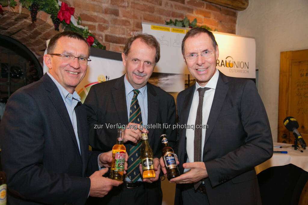 Brau Union Österreich Geschäftsführer Marketing Andreas Stieber, Brau Union Österreich Generaldirektor Markus Liebl, Brau Union Österreich Geschäftsführer Geschäftsfeld Gastronomie Andreas Hunger: Brau Union Österreich 2014: Absatz- und Umsatzplus, Startschuss für weltweit erste „Grüne Großbrauerei“, © Aussender (03.03.2015)
