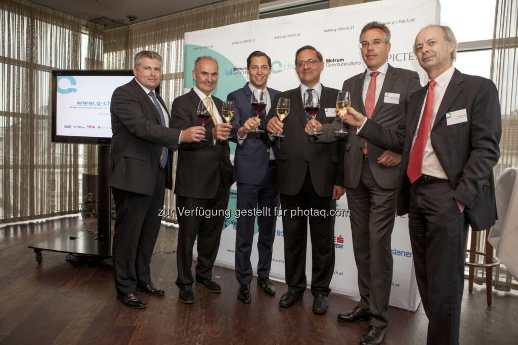 Thomas Neuhold, Kepler Cheuvreux Österreich; Johann Marihart, Agrana; Dominik Hojas, DerBörsianer; Günther Ofner, Flughafen Wien; Reinhard Prüfert, Örag Immobilien, Peter Szopo, Erste Asset Management : Q-Check 20.0: Am Aktienmarkt führt kein Weg vorbei : © Clemens Bednar/Q-Check, © Aussender (15.07.2015)