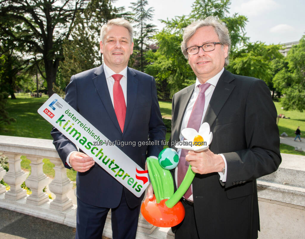 BM Andrä Rupprechter, Alexander Wrabetz (Generaldir. ORF) : Der Countdown läuft: Einreichungen für Österreichischen Klimaschutzpreis nur noch bis 17. August : Verliehen wird der Österreichische Klimaschutzpreis von Bundesminister Andrä Rupprechter und ORF-Generaldirektor Alexander Wrabetz : Fotograf: Thomas Jantzen/Fotocredit: ORF, © Aussendung (10.08.2015)