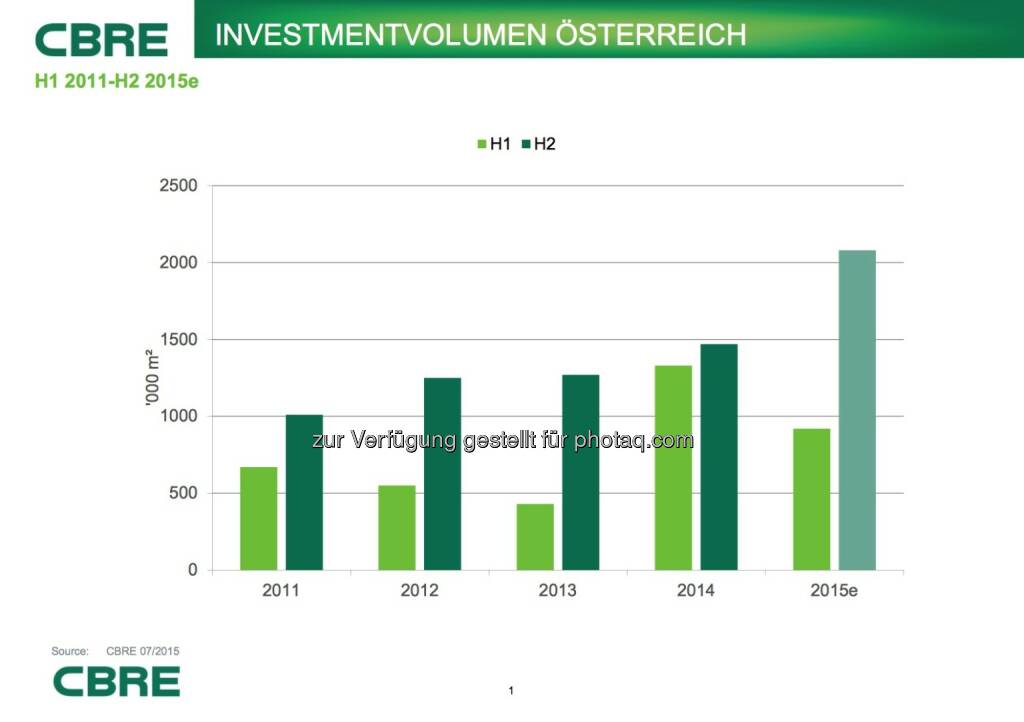 Cbre: Investmentvolumen Österreich, © Aussender (07.07.2015)