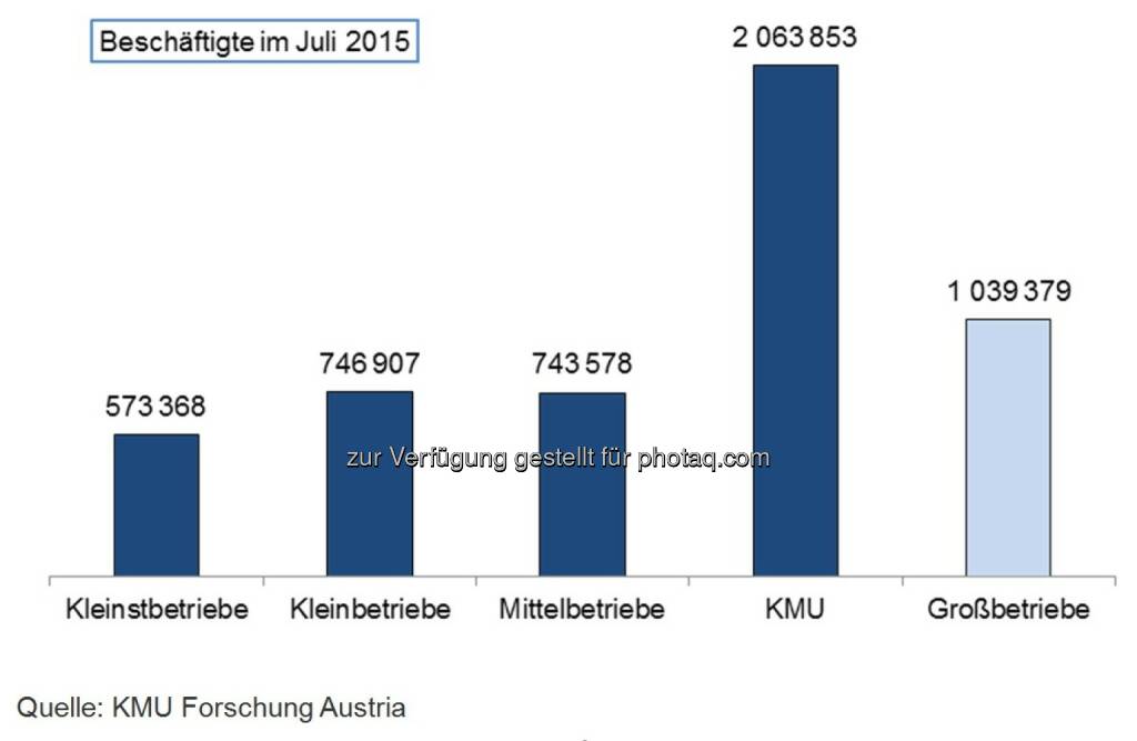 Beschäftigte im Juli 2015 - Kleinstbetriebe, Kleinbetriebe, Mittelbetriebe, KMU und Großbetriebe : Beschäftigungsrekord in KMU : Mehr als 2 Millionen Arbeitsplätze in den kleinen und mittleren Unternehmen Österreichs : Fotocredit: KMU Forschung Austria, © Aussender (15.09.2015)