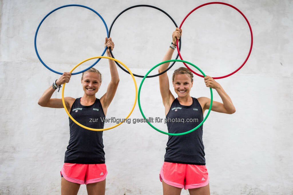 Anna und Lisa Hahner mit den Olympischen Ringen, © https://www.facebook.com/hahnertwins.AnnaHahner.LisaHahner (27.01.2016)