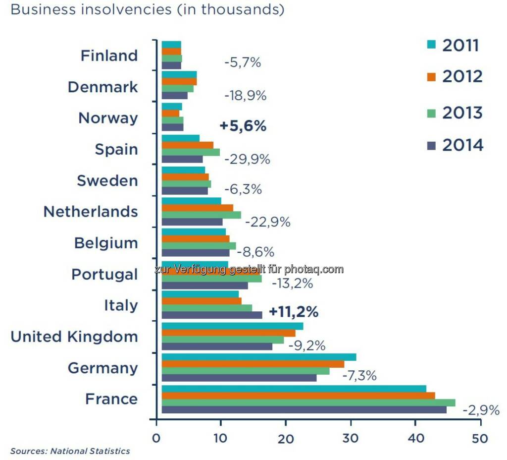 Coface : 2015 wird in Westeuropa ein Rückgang der Unternehmensinsolvenzen erwartet : Entspannung in Sicht: Der 2014 beobachtete Rückgang von 9 Prozent wird sich im Jahr 2015 mit minus 7 Prozent fortsetzen