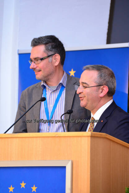 Stephan Amann (Abteilungsleiter Integration und Interkulturabteilung Volkshilfe Wien), Ramazan Salman (GF Ethnomedizinischen Zentrum e.V. Hannover) : Preisverleihung des European Health Awards in Gastein am 2. Oktober 2015 : MiMi-Gesundheitsprojekt des Ethno-Medizinischen Zentrums in Hannover, das in Österreich von der Volkshilfe Wien durchgeführt wird, siegt beim European Health Award 2015 : ©ehfg, © Aussendung (05.10.2015)