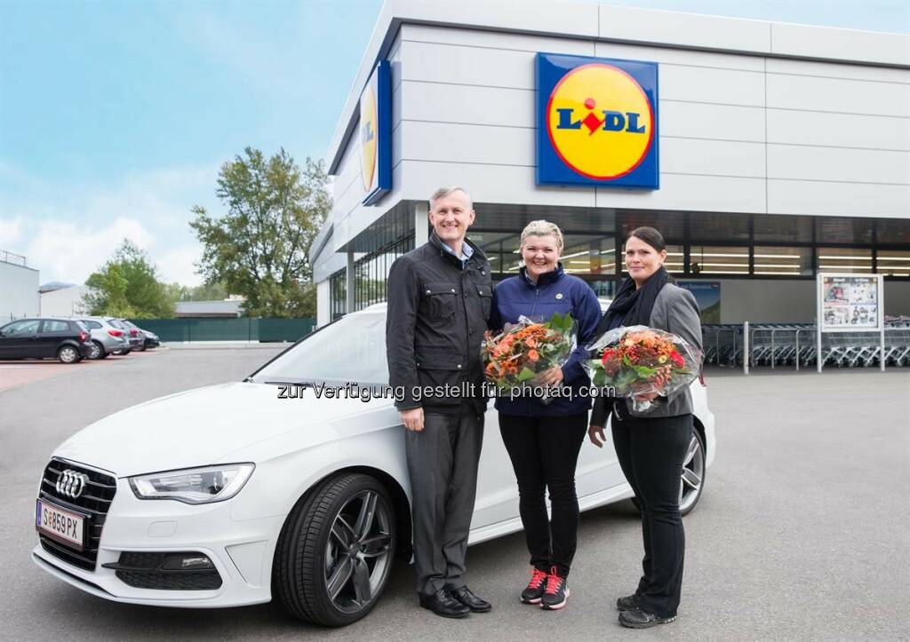 Alexander Deopito (Vors. Geschäftsleitung Lidl Österreich), Arabella Alic (Filialleiterin Lidl Salzburg Bahnhofstraße), Farida Homburg (Filialleiterin Lidl Salzburg Münchner Bundesstraße) : Größtes Personalentwicklungsprojekt der Unternehmensgeschichte : Lidl Österreich stellt Filialleiter in den Mittelpunkt eines einzigartigen Weiterbildungs- und Qualifizierungs-Programms : © Lidl Österreich, © Aussendung (13.10.2015)