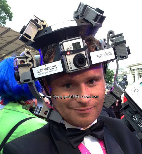Alessandro Dimas (Dimas Technologies GmbH): 360 Grad Video Helm für Veranstaltungen oder Videos aus der Ich Perspektive. Der Kopf wird quasi zur 360 Grad Videokamera : Fotocredit: 360-grad-video.com/Dimas, © Aussendung (20.11.2015)