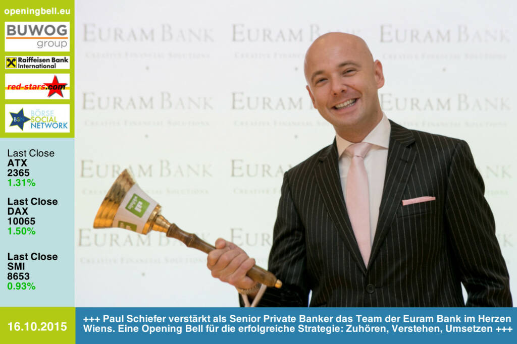 #openingbell am 16.10.: Paul Schiefer verstärkt als Senior Private Banker das Team der Euram Bank im Herzen Wiens. Eine Opening Bell für die erfolgreiche Strategie: Zuhören, Verstehen, Umsetzen http://www.openingbell.eu (16.10.2015)