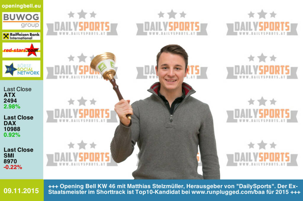 #openingbell am 9.11.: Opening Bell KW 46 mit Matthias Stelzmüller, Herausgeber von "DailySports". Der Ex-Staatsmeister im Shorttrack ist Top10-Kandidat bei www.runplugged.com/baa für 2015 http://www.dailysports.at http://www.openingbell.eu (09.11.2015)