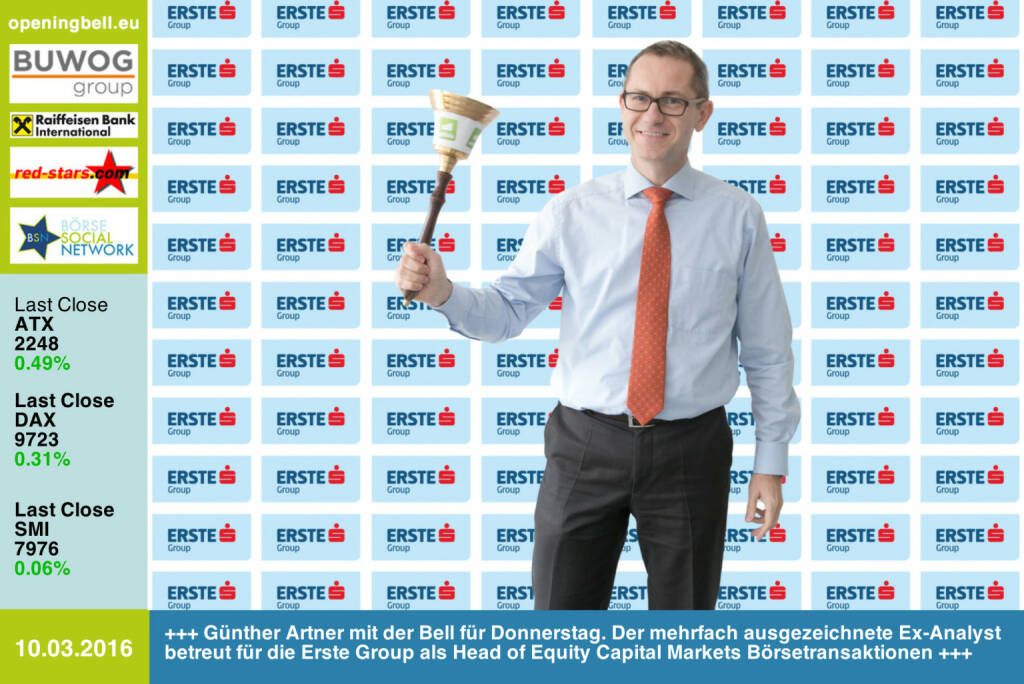 #openingbell am 10.3: Günther Artner mit der Opening Bell für Donnerstag. Der mehrfach ausgezeichnete Ex-Analyst betreut für die Erste Group als Head of Equity Capital Markets Börsetransaktionen http://www.erstegroup.com/de/Capital-Markets http://www.openingbell.eu (10.03.2016)