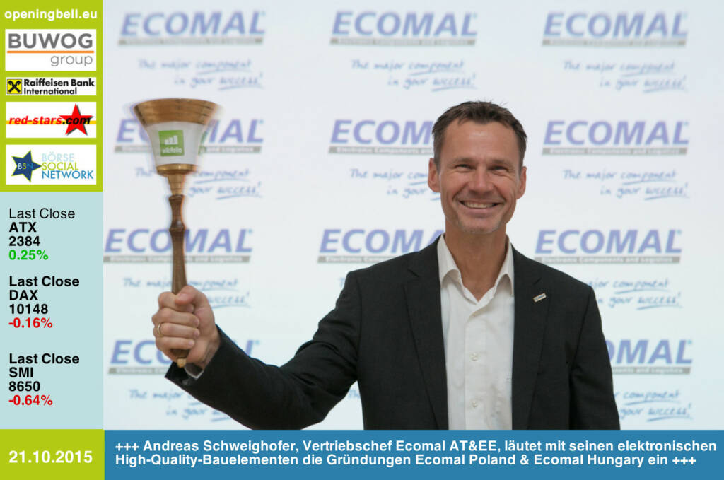 #openingbell am 21.10.: Andreas Schweighofer, Vertriebschef Ecomal AT&EE, läutet mit seinen elektronischen High-Quality-Bauelementen die Gründungen Ecomal Poland & Ecomal Hungary ein, http://www.ecomal.com http://www.openingbell.eu (21.10.2015)