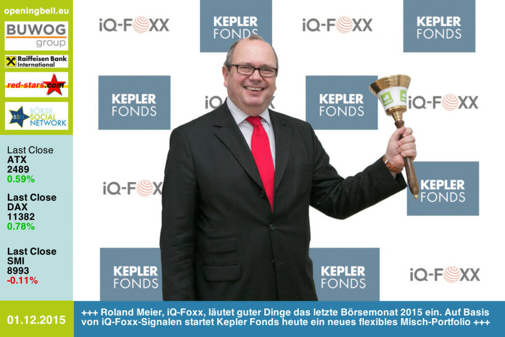 #openingbell am 1.12: Roland Meier, iQ-Foxx, läutet mit der Opening Bell guter Dinge das letzte Börsemonat 2015 ein. Auf Basis von iQ-Foxx-Signalen startet Kepler Fonds heute ein neues flexibles Misch-Portfolio https://www.kepler.at/ https://goo.gl/GfX0kT http://www.iq-foxx.com http://www.openingbell.eu (01.12.2015)